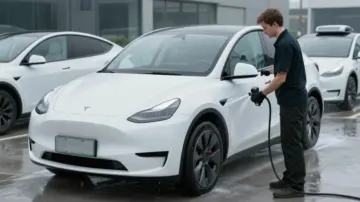 A: The model on display is a 1997 soft-top convertible. The conversion from a coupe was performed by American Specialty Cars (ASC), a US-based firm known for such modifications. Its appearance is a distinct reflection of the 1990s, with bright yellow paint, purple side decals, and chrome wheels.