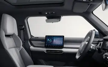 Inside, the cabin's most notable feature is the set of front seats. They provide excellent lateral support and include a massaging function, a welcome touch for long drives. The interior is trimmed with suede and red stitching, enhancing its sporty feel. However, the extensive use of piano black plastic on the center console is prone to fingerprints, and despite the vehicle's large size, passenger space in the second and third rows is surprisingly tight for taller occupants.